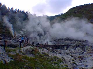奥に蒸気が立ち上っているところがありますが、ここら辺は地面が結構熱く、そこにゴザを引いて寝ている人たちがいます。それが寝風呂(忘れました)とか言って、色々病気が治るそうです。真偽のほどは自分で確かめて下さいね。