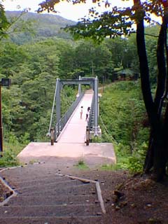 これは先ほどの喫茶店側から橋を写したものです。お風呂から橋が見えるので、もしかしたら橋からお風呂が見えるかもしれません。(^_^;)